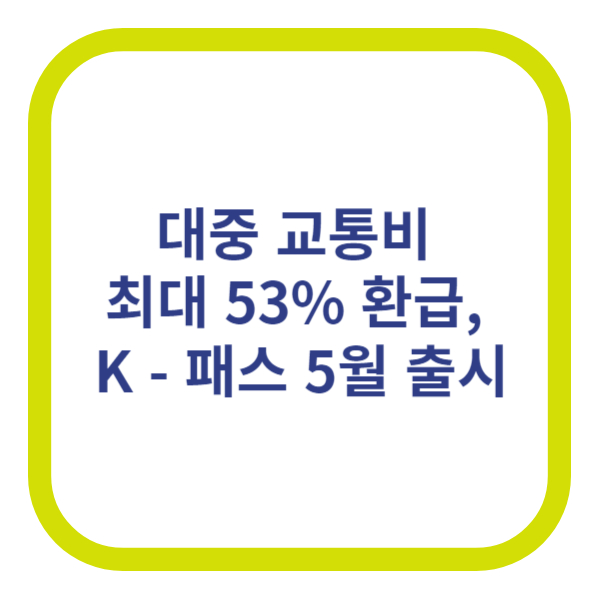대중교통 이용요금의 최대 53%를 환급하는 K - 패스가 5월에 도입됩니다. 일반 시내버스나 지하철 뿐 아니라 GTX와 광역버스 같은 고비용 수단을 이용할 때도 혜택을 받을 수 있다고 하네요. 조금이라도 이 제도의 헤택을 받으면 좋겠네요.