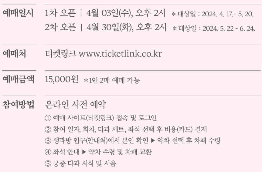 | 2024 덕수궁 밤의 석조전 사전 예매 필수 (0) | 2024.05.02 |