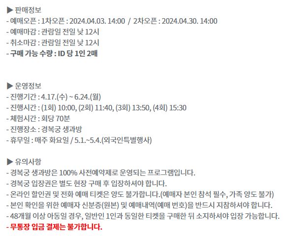 2024 경복궁 사전 예매 필수 100% 예약으로 가능