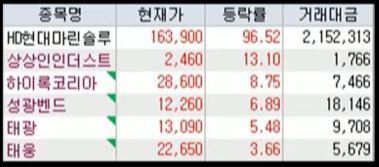 * 조선업황 본격 회복 기대감에 관련주들이 부각, 조선기자재 관련주 상승